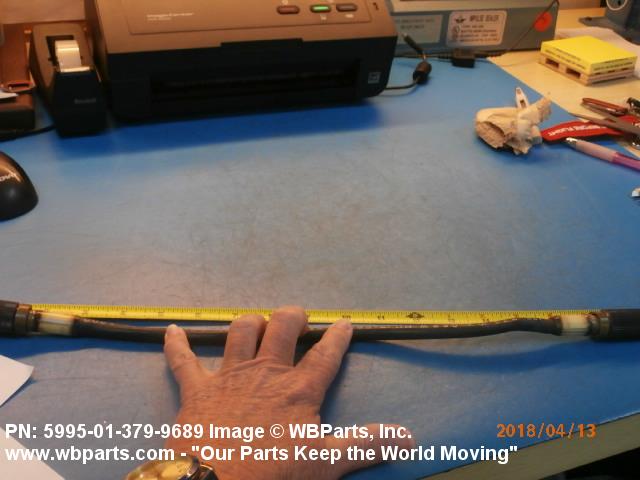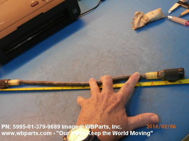 5995-01-379-9689 A definite length of CABLE, RADIO FREQUENCY having one or both ends processed and/or terminated in fittings which provide for connection to other items. Includes multiple cable assemblies in a common jacket or shield. Excludes items having branches or forks and LEAD, TEST. See also CABLE ASSEMBLY, RADIO FREQUENCY, BRANCHED.20211350043Fuzing and Firing Devices, Nuclear Ordnance59950057Cable, Cord, and Wire Assemblies: Communication Equipment