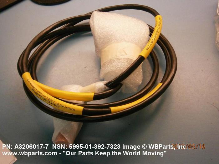 5995-01-392-7323 A definite continuous length of CABLE, POWER, ELECTRICAL with branches (forks), and having one or more ends processed and/or terminated in fittings which provide for connection to other items. Excludes LEAD, TEST. See also WIRING HARNESS, BRANCHED.20511150037Nuclear Warheads and Warhead Sections11350043Fuzing and Firing Devices, Nuclear Ordnance11900057Specialized Test and Handling Equipment, Nuclear Ordnance49350070Guided Missile Maintenance, Repair, and Checkout Specialized Equipment61500055Miscellaneous Electric Power and Distribution Equipment