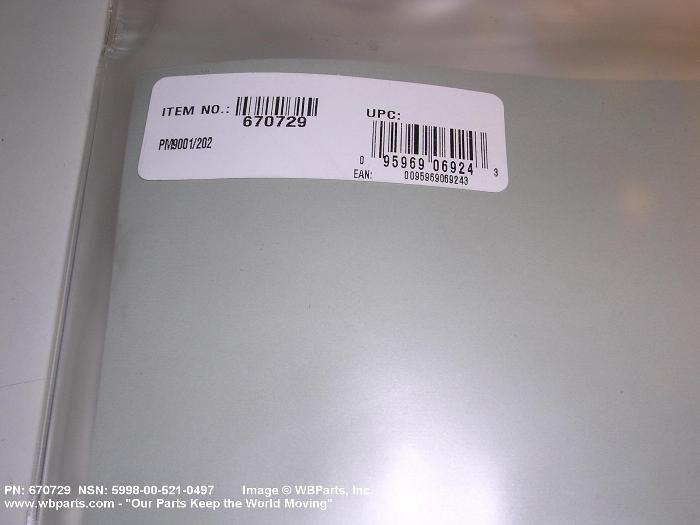 Part Alternates: 6060203018, 60-6020-3018, 670729, 5998-00-521-0497, 00-521-0497, 5998005210497, 005210497