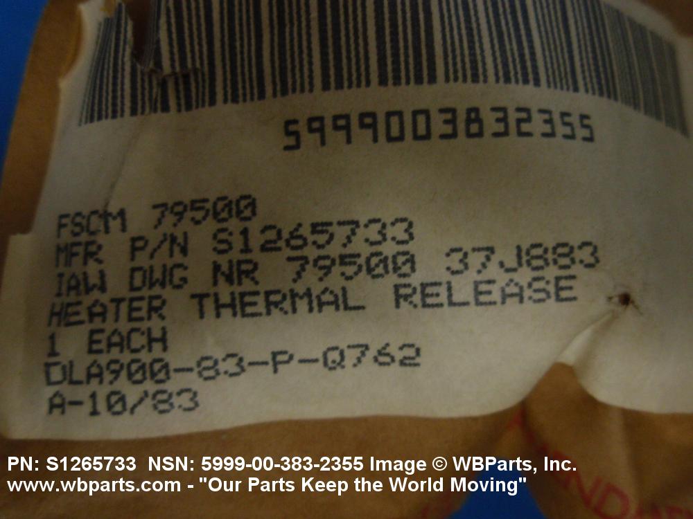 Part Alternates: S1265733, 10481352, 104-813-52, 37J883PC9, 5999-00-383-2355, 00-383-2355, 5999003832355, 003832355