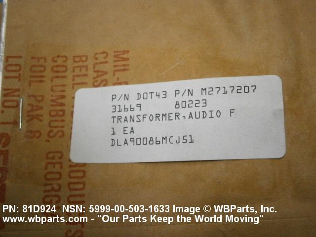 Part Alternates: 81D924, 5999-00-503-1633, 00-503-1633, 5999005031633, 005031633
