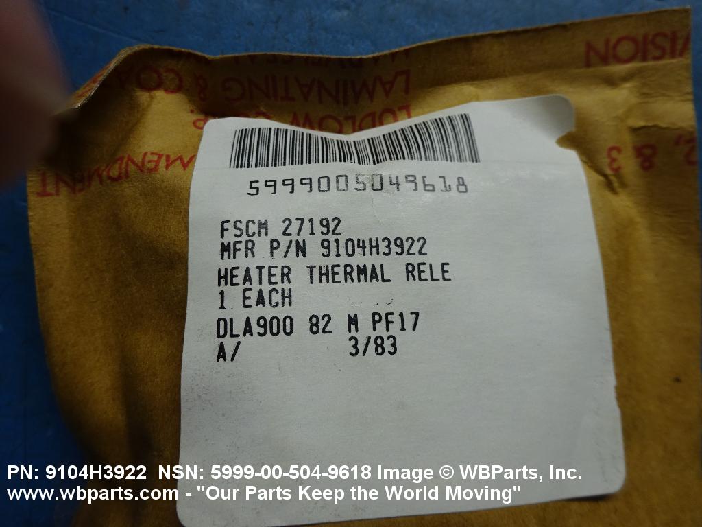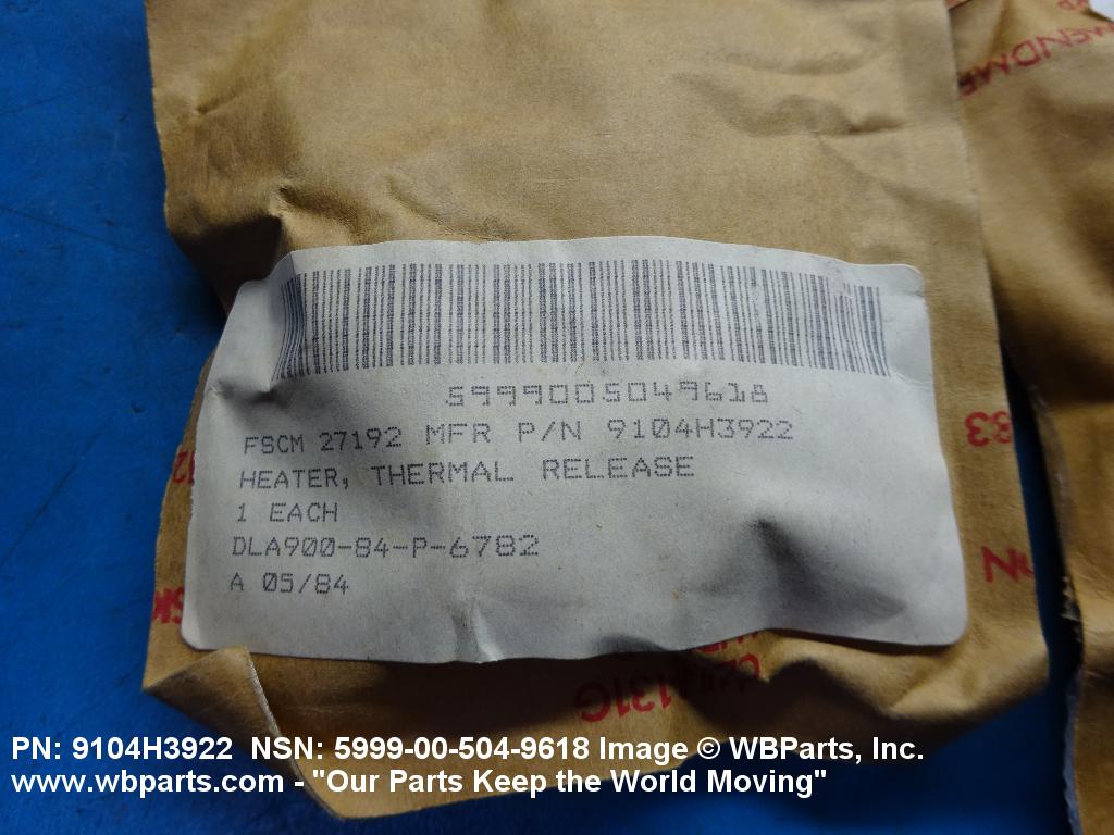 Part Alternates: 9104H3922, 5999-00-504-9618, 00-504-9618, 5999005049618, 005049618