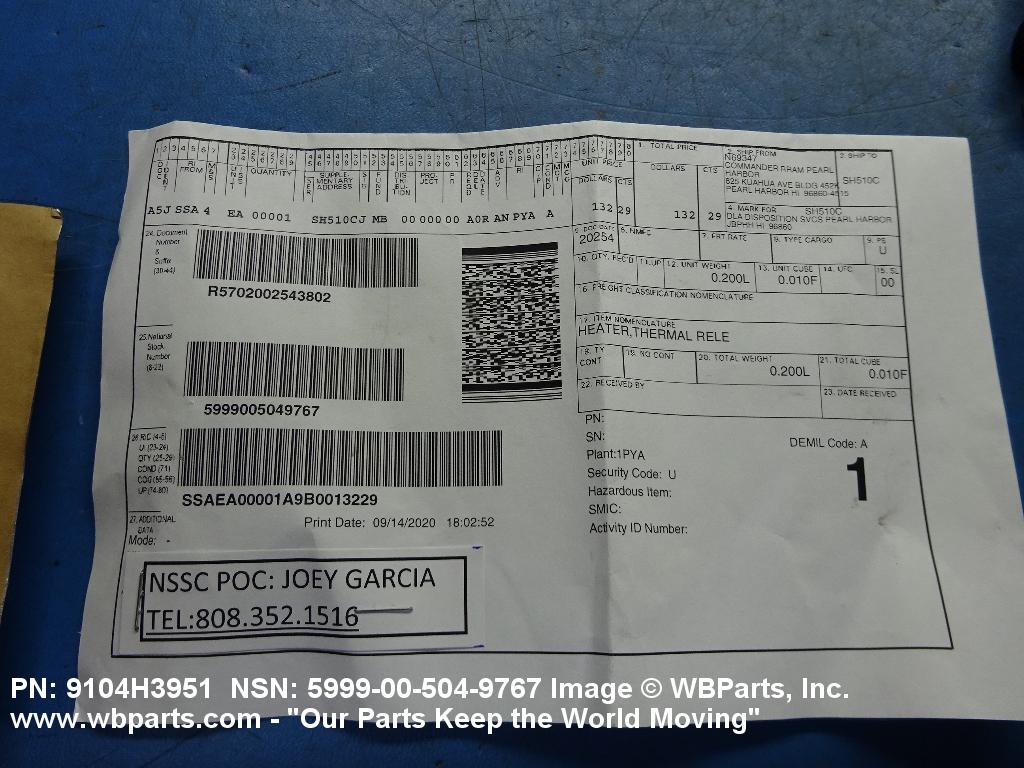 Part Alternates: H3951, 43075035, 43-075-035, 9104H3951, 9104H3951A, 9104-H-3951A, 9586H3951A, 5999-00-504-9767, 00-504-9767, 5999005049767, 005049767