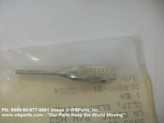 5999-00-677-9861 A clip designed to electrically connect items and components. Its primary function is to make a quick and/or temporary electrical connection. Includes alligator and crocodile test clips, battery clips, contact clips, electron tube clips, resistor clips, or the like. For electron tube grid and plate cap clips with wire leads attached, see LEAD, ELECTRICAL. Excludes CLAMP, ELECTRICAL; CLIP, SPRING TENSION; and FUSEHOLDER (as modified).