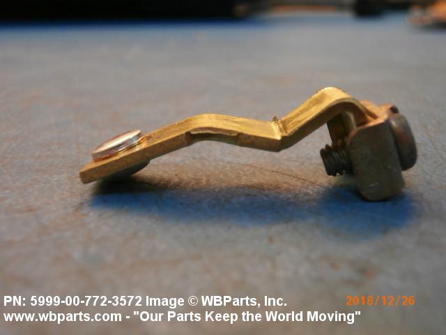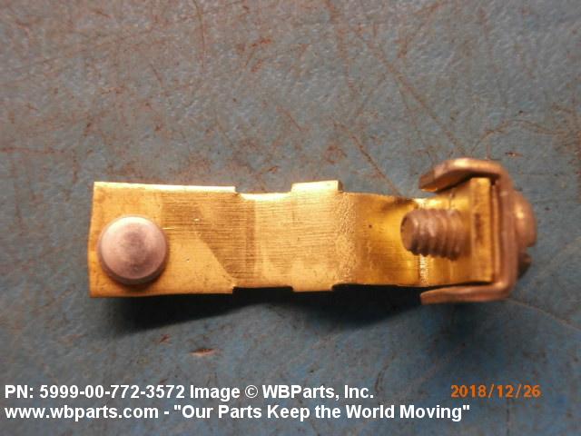 5999-00-772-3572 An item consisting of an electrically conductive material designed to furnish a surface which will physically and electrically meet another conducting surface for the purpose of transferring electrical energy and/or opening and closing circuits. Includes moving contacts which make and/or slide over stationary contacts or other stationary conductive material to a resulting fixed position. Excludes items which are used in conjunction with continually moving surfaces or which make contact by gripping action of the contact surfaces. See also CLIP, ELECTRICAL; CLAMP, ELECTRICAL; BRUSH, ELECTRICAL CONTACT; PLUG, TIP; and JACK, TIP.
