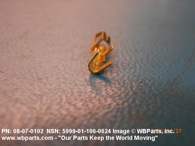 5999-01-106-0624 An item consisting of an electrically conductive material designed to furnish a surface which will physically and electrically meet another conducting surface for the purpose of transferring electrical energy and/or opening and closing circuits. Includes moving contacts which make and/or slide over stationary contacts or other stationary conductive material to a resulting fixed position. Excludes items which are used in conjunction with continually moving surfaces or which make contact by gripping action of the contact surfaces. See also CLIP, ELECTRICAL; CLAMP, ELECTRICAL; BRUSH, ELECTRICAL CONTACT; PLUG, TIP; and JACK, TIP.