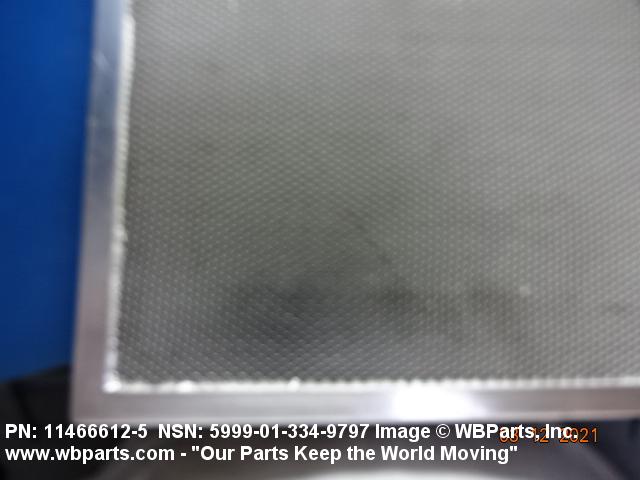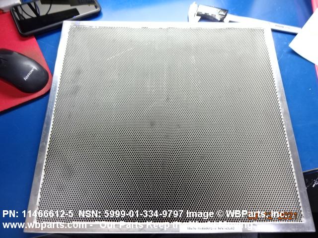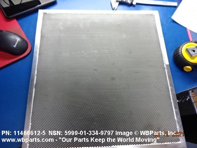 5999-01-334-9797 A replaceable device in panel form designed to eliminate radio frequency and electromagnetic interference from the air passing through it. The elimination of interference is accomplished by reflection and/or absorption of radiated electromagnetic energy by media constructed of electrically conductive material, in honeycomb or louvered form confined in a frame, with electrically conductive gasketing (or self-gasketing feature) to provide electrical contact with the cabinet on which it is installed or mounted. It may be used in air ventilating or heating ducts, lighting aperture and the like. It may have a filter for dust protection. It may include a drip-proof design feature. Excludes electrical filtering devices which employ capacitor, resistor and coil components to eliminate or suppress conducted electromagnetic energy. Excludes SHIELD,TEST.