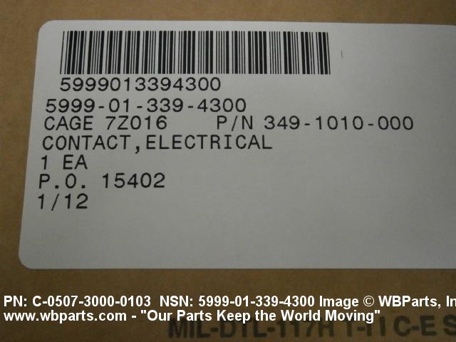 Part Alternates: C050730000103, C-0507-3000-0103, 10139701 , 3491010000, 349-1010-000, 5M2561002P, 5M2561-002P, 5999-01-339-4300, 01-339-4300, 5999013394300, 013394300