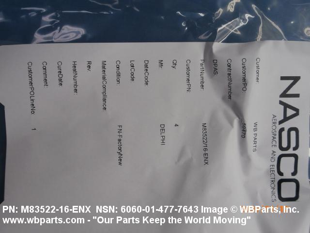 NSN 6060-01-477-7643 M83522/16-ENX, M8352216ENX, MILC83522