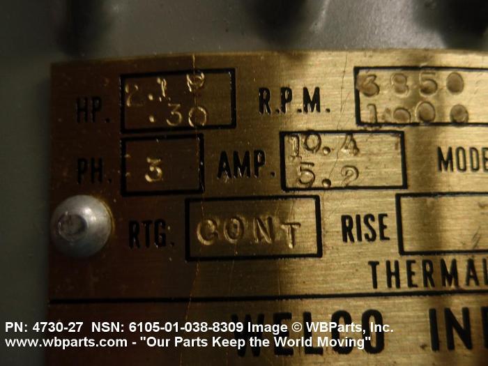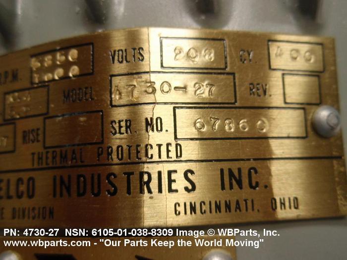 Part Alternates: 13214E372816, 13214E3728-16, 47254, 4725-4, 473027, 4730-27, 6105-01-038-8309, 01-038-8309, 6105010388309, 010388309