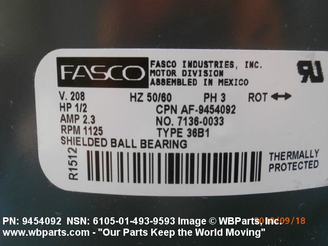 NSN 6105-01-493-9593 9454092, 01-493-9593, 014939593