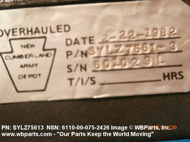 Part Alternates: SYLZ75613, SYLZ7561-3, 6110-00-075-2426, 00-075-2426, 6110000752426, 000752426