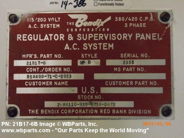| 21B17-6-B | 83298 | ALLIED SIGNAL INC AEROSPACE EQUIPMENT SYSTEMS |