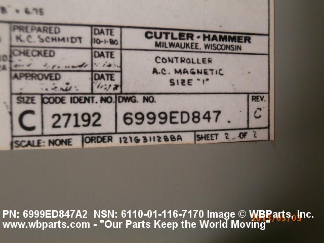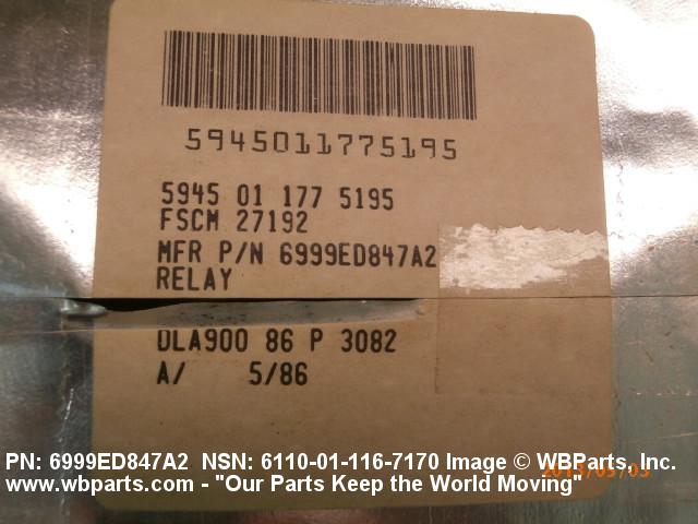 Part Alternates: 6999ED847, 6999ED847A2, 6110-01-116-7170, 01-116-7170, 6110011167170, 011167170