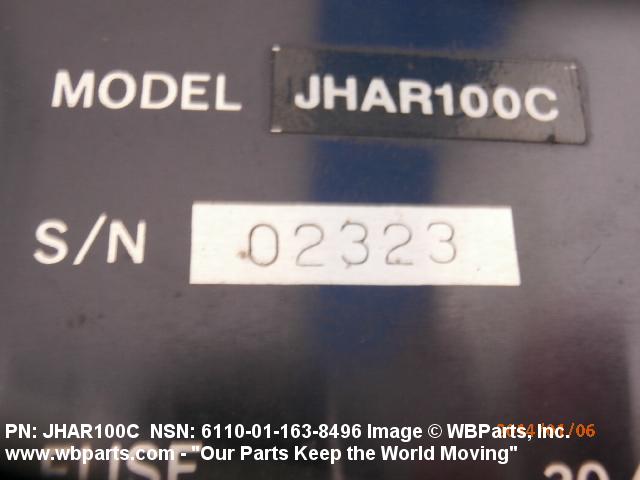 Part Alternates: JHAR100B, JHAR100C, 848986, 100B, 6110-01-163-8496, 01-163-8496, 6110011638496, 011638496