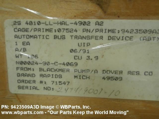 Part Alternates: ABT4A350D, ABT-4A3-50D, DODS17773BSH, MILS17773, 9423509A3D, 6110-01-231-2073, 01-231-2073, 6110012312073, 012312073