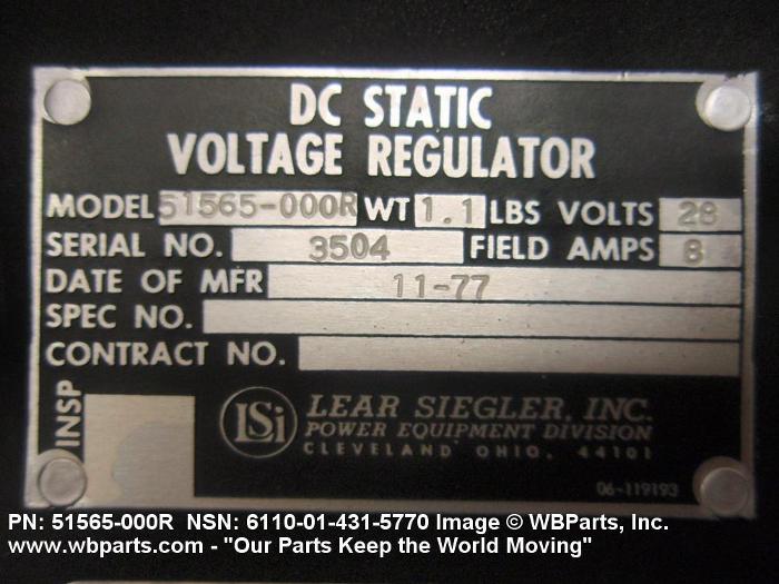NSN 6110-01-431-5770 51565000R, 51565-000R, 01-431-5770