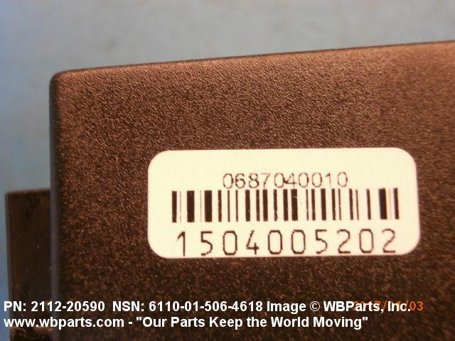 Part Alternates: 2112-20590, 6110-01-506-4618, 01-506-4618, 6110015064618, 211220590, 015064618