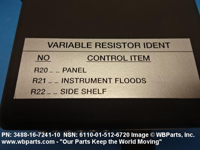 Part Alternates: 348816724110, 3488-16-7241-10, 348816724120, 3488-16-7241-20, 6110-01-512-6720, 01-512-6720, 6110015126720, 015126720