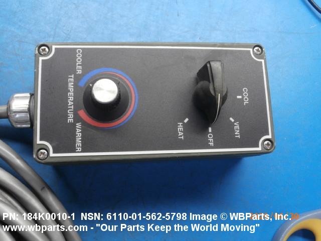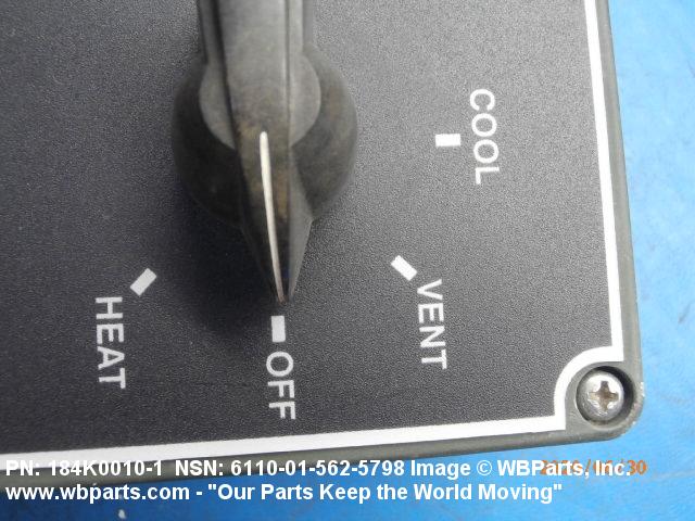 | III PART NAME ASSIGNED BY CONTROLLING AGENCY | INCLUDES: 1 SWITCH, ROTARY 4 POSITION, COOL, VENT, OFF AND HEAT; 1 POTENTIOMETER THAT ADJUSTS TEMPERATURE COOLER TO WARMER; 1 CABLE ASSEMBLY WITH ELECTRICAL CONNECTOR |