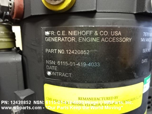 Part Alternates: N15061, N1506-1, 12420852, 6115-01-419-4033, 01-419-4033, 6115014194033, 014194033