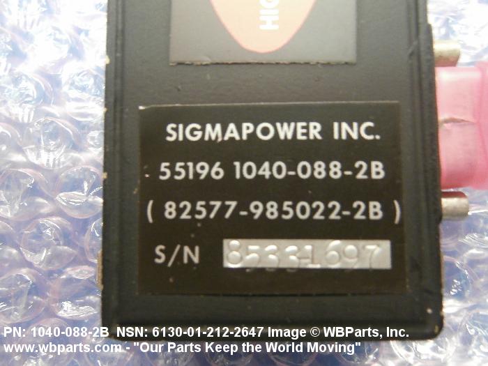 Part Alternates: DC268, DC2-68, 10139836 , 10400882B, 1040-088-2B, 9850222B, 985022-2B, 6130-01-212-2647, 01-212-2647, 6130012122647, 012122647