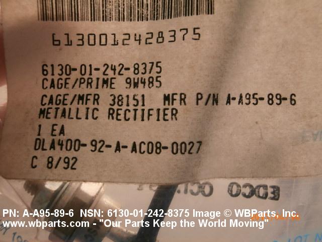 Part Alternates: AA95896, A-A9589-6, 6130-01-242-8375, 01-242-8375, 6130012428375, 012428375