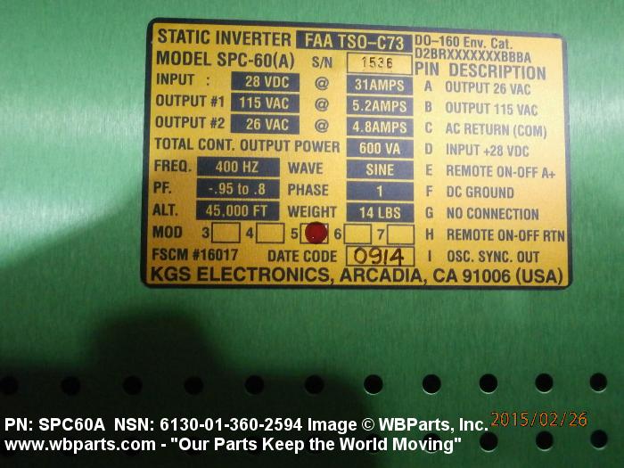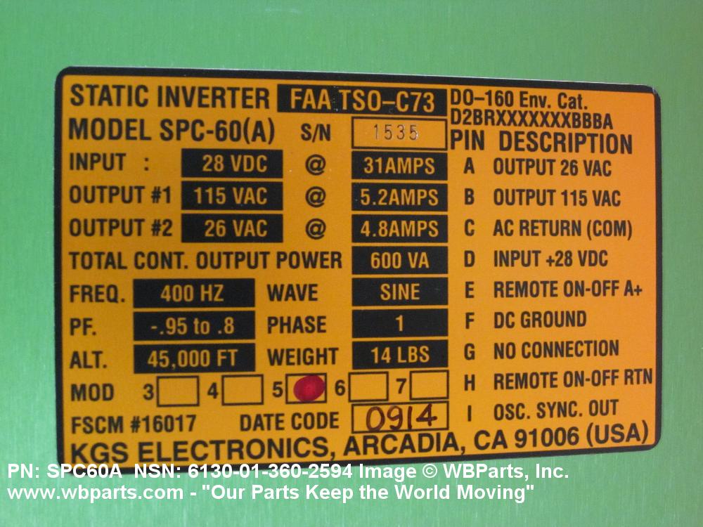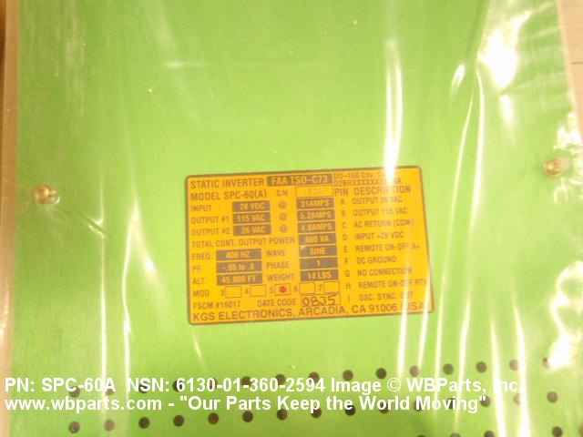 Part Alternates: SPC60A, 94720, 6130-01-360-2594, 01-360-2594, 6130013602594, 013602594