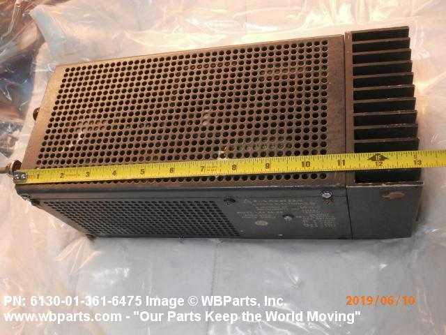 6130-01-361-6475 A component which converts available alternating current or direct current electrical power into a form required to operate another component or set. The item may consist of a combination of an INVERTOR, VIBRATOR; VIBRATOR, INTERRUPTER; VIBRATOR, SELF-RECTIFYING; INVERTOR, POWER, STATIC; with a transformer and rectifier(s) employing electron tubes, semiconductor diode or metallic (dry disc) type components, or the synchronized secondary contact(s) of a VIBRATOR, SELF-RECTIFYING; or may consist of electron tubes, semiconductor diode or metallic (dry disc) type rectifiers and capacitors in transformerless (alternating current-direct current type) circuits which may be of the voltage-multiplier type. The item may incorporate a FILTER, DIRECT CURRENT POWER and provisions for regulation of input and/or output voltage. The item may have special input, output, control or other facilities for applications in specialized environments such as medical, dental or other operations. Excludes battery chargers and rotating machinery types of items, such as motor generators and dynamotors.20461200044Transformers: Distribution and Power Station61300035Converters, Electrical, Nonrotating65150057Medical and Surgical Instruments, Equipment, and Supplies65200043Dental Instruments, Equipment, and Supplies