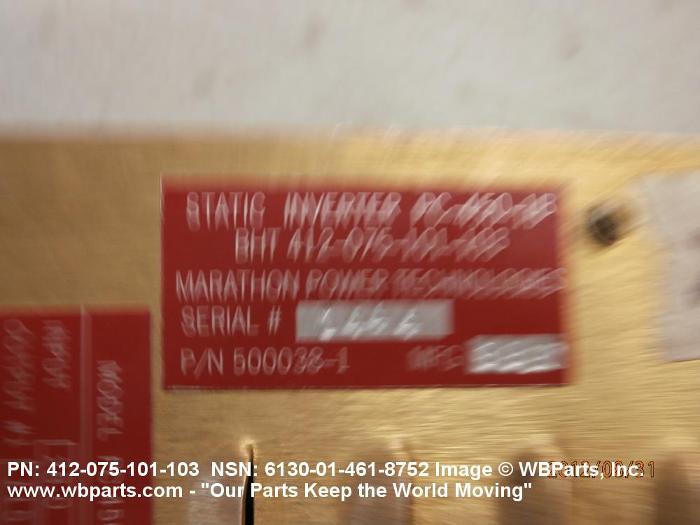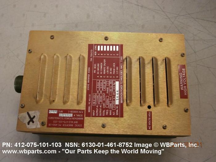 Part Alternates: 412075101103, 412-075-101-103, 6130-01-461-8752, 01-461-8752, 6130014618752, 014618752