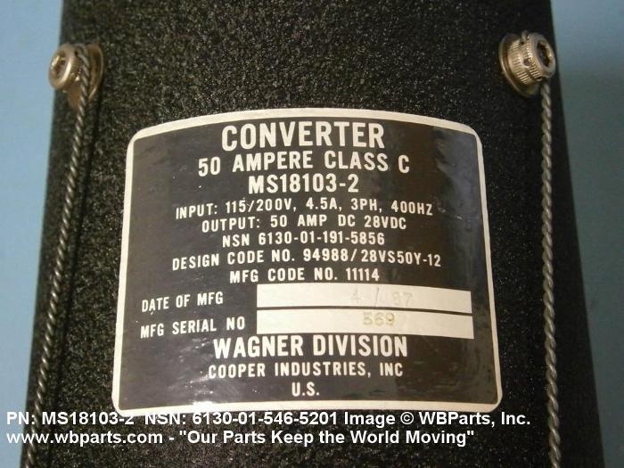 6130-01-546-5201 A component which converts available alternating current or direct current electrical power into a form required to operate another component or set. The item may consist of a combination of an INVERTOR, VIBRATOR; VIBRATOR, INTERRUPTER; VIBRATOR, SELF-RECTIFYING; INVERTOR, POWER, STATIC; with a transformer and rectifier(s) employing electron tubes, semiconductor diode or metallic (dry disc) type components, or the synchronized secondary contact(s) of a VIBRATOR, SELF-RECTIFYING; or may consist of electron tubes, semiconductor diode or metallic (dry disc) type rectifiers and capacitors in transformerless (alternating current-direct current type) circuits which may be of the voltage-multiplier type. The item may incorporate a FILTER, DIRECT CURRENT POWER and provisions for regulation of input and/or output voltage. The item may have special input, output, control or other facilities for applications in specialized environments such as medical, dental or other operations. Excludes battery chargers and rotating machinery types of items, such as motor generators and dynamotors.20461200044Transformers: Distribution and Power Station61300035Converters, Electrical, Nonrotating65150057Medical and Surgical Instruments, Equipment, and Supplies65200043Dental Instruments, Equipment, and Supplies