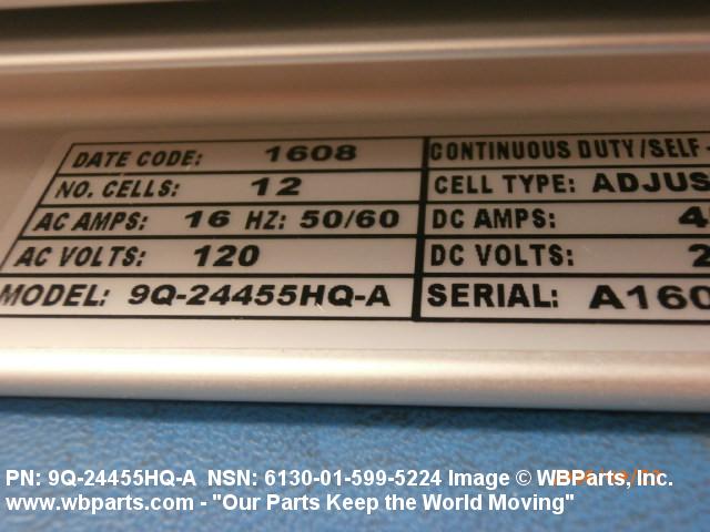 Part Alternates: 9Q24455HQA, 9Q-24455HQ-A, 6130-01-599-5224, 01-599-5224, 6130015995224, 015995224