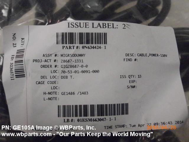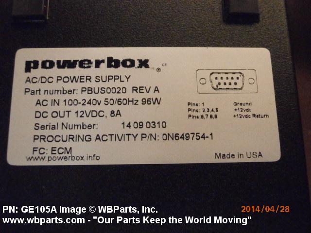 Part Alternates: GE105A, GE-105A , PBUS0020 , 6130-01-630-9275, 01-630-9275, 6130016309275, 016309275