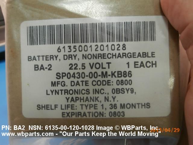 Part Alternates: AA59262, A-A-59262, AA59262BA2, AA59262BA-2, BA002, G17000200, JANB18, 8002, BA2, 6135-00-120-1028, 00-120-1028, 6135001201028, 001201028