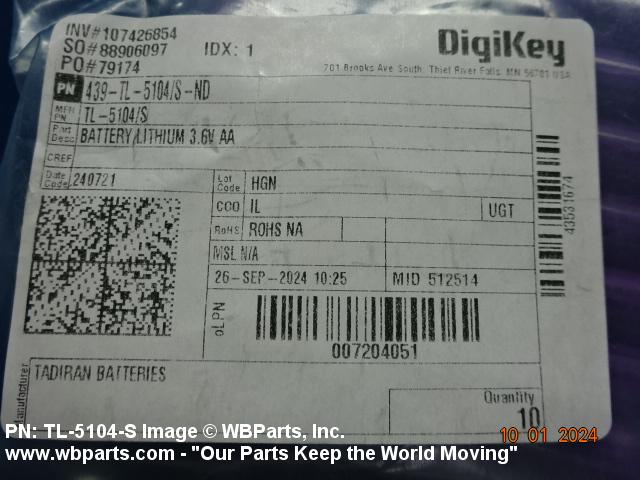 | TL-5104/S | 4J947 | SAFT FEDERAL SYSTEMS, INC. DBA TADIRAN BATTERIES |