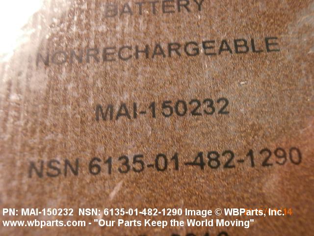 Part Alternates: MAI150232, MAI-150232, 6135-01-482-1290, 01-482-1290, 6135014821290, 014821290