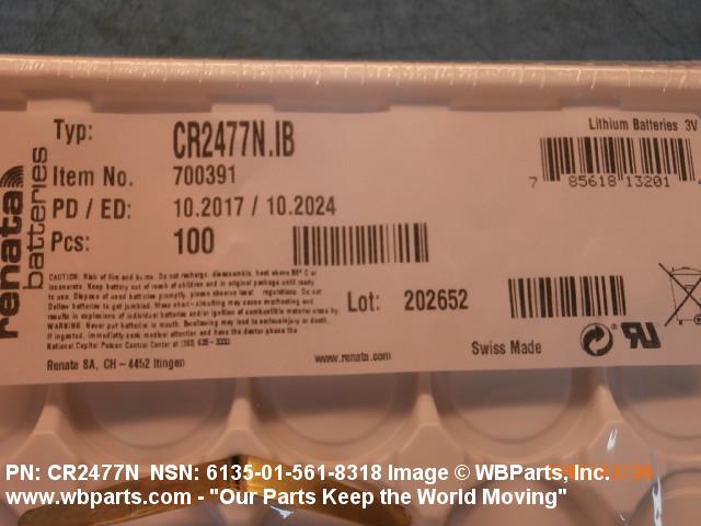 NSN 6135-01-561-8318 CR2477N, 01-561-8318, 015618318