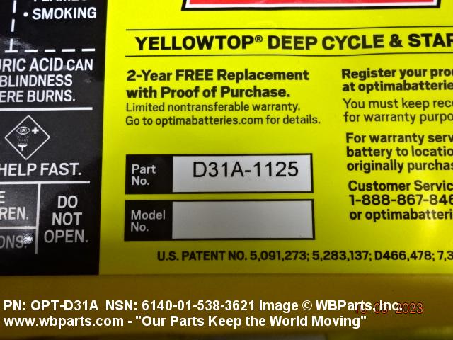 Restrictions/Controls & Freight Information | NSN 6140-01-538-3621