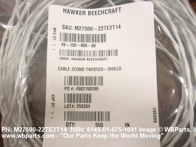 Part Alternates: M2750022TE2T14, M27500-22TE2T14, NEMA WC27500, NEMAWC27500, MILDTL27500, MIL-DTL-27500, 6145-01-075-1041, 01-075-1041, 6145010751041, 010751041