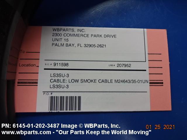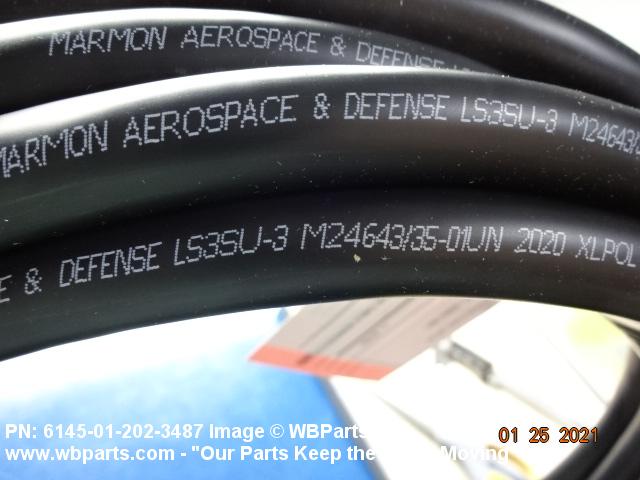 6145-01-202-3487 Two or more insulated conductors (solid or stranded) contained in a common covering, or two or more insulated conductors twisted or molded together without a common covering, or one insulated conductor with a metallic covering, covering, shield, or outer conductor. The rated working voltage of the item must be 300 volts or more, or in lieu of this the test voltage must be 1,000 volts or more; and the size of each individual conductor must be number 18 American Wire Gage (0.75 SQUARE MILLIMETERS) or larger. For cables with uninsulated neutral conductor use the hightest rated voltage. Refers to bulk quantities only, for items of definite length with processed ends or terminated in fittings, see CABLE ASSEMBLY, POWER, ELECTRICAL. For low voltage aircraft and automotive cable, see CABLE, SPECIAL PURPOSE, ELECTRICAL.202411000006145000000