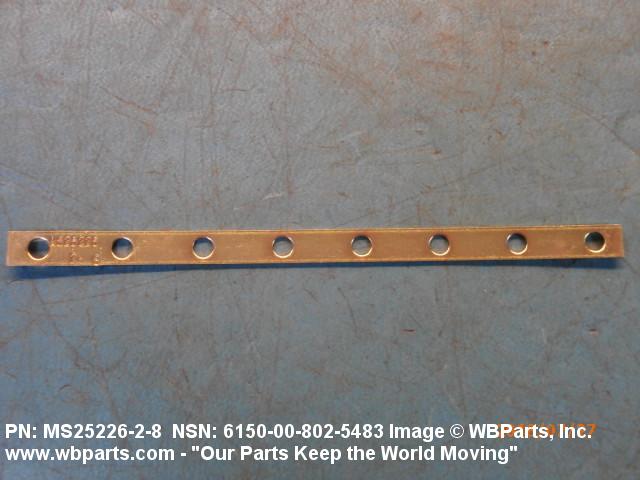 6150-00-802-5483 An item made of rigid or semirigid conductive material, usually employed in the distribution of heavy electrical current. It is cut to specific lengths and is shaped, drilled, tapped or otherwise terminated. It may be fabricated in any of various cross-sectional shapes and sizes and may include terminal lugs. It may be designed to connect two or more screw or stud terminations. Excludes TERMINAL STRIP, GROUNDING.