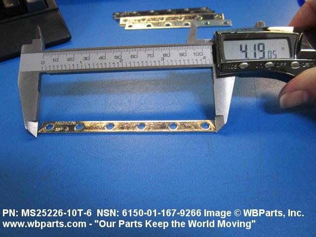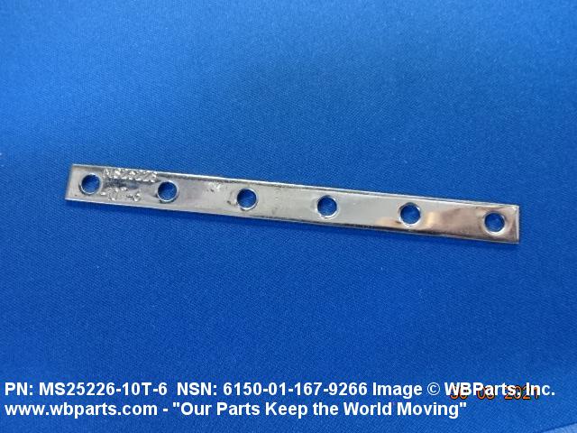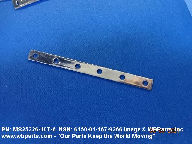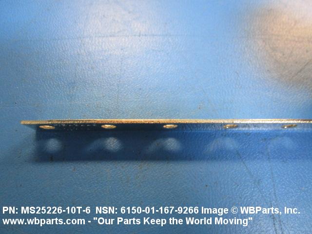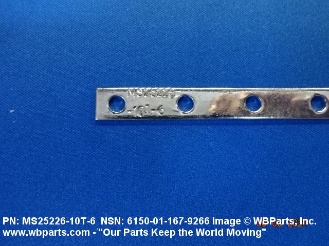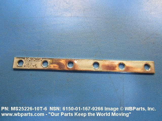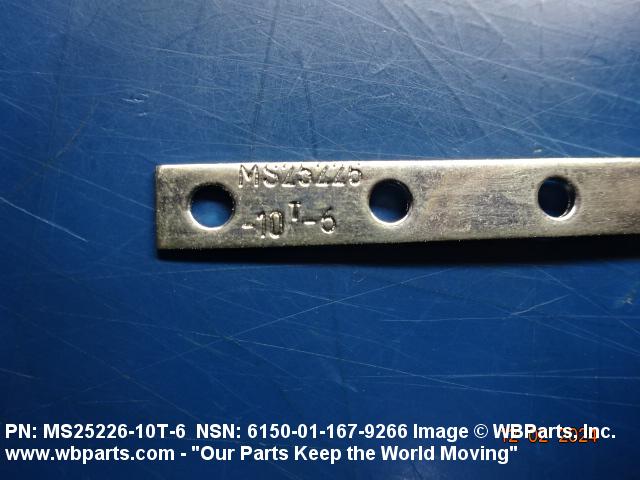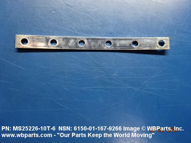 6150-01-167-9266 An item made of rigid or semirigid conductive material, usually employed in the distribution of heavy electrical current. It is cut to specific lengths and is shaped, drilled, tapped or otherwise terminated. It may be fabricated in any of various cross-sectional shapes and sizes and may include terminal lugs. It may be designed to connect two or more screw or stud terminations. Excludes TERMINAL STRIP, GROUNDING.