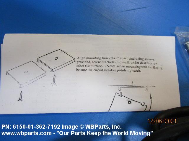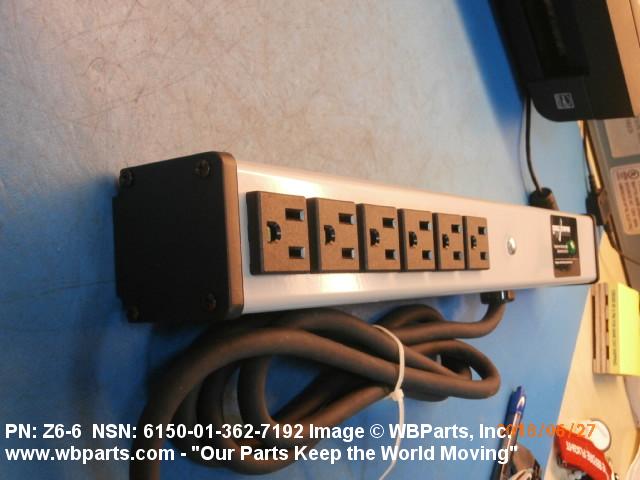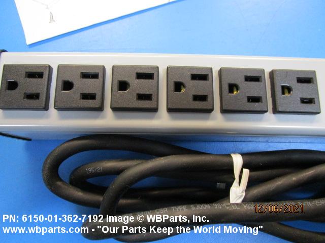 6150-01-362-7192 An enclosed item consisting of one or more CONNECTOR, RECEPTACLE, ELECTRICAL, mounted on a common mounting. It is designed to be electrically connected to a power supply cable or cord which may be included. It may consist of one or more of the following accessories in various combinations; alarms, circuit breakers, switches and the like that control/protect the device. It may be permanently mounted.