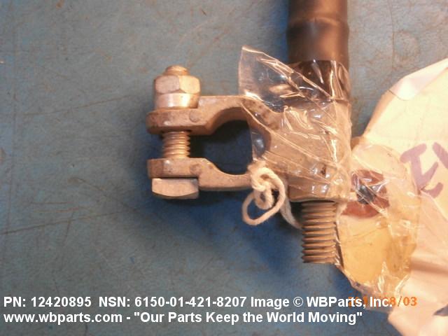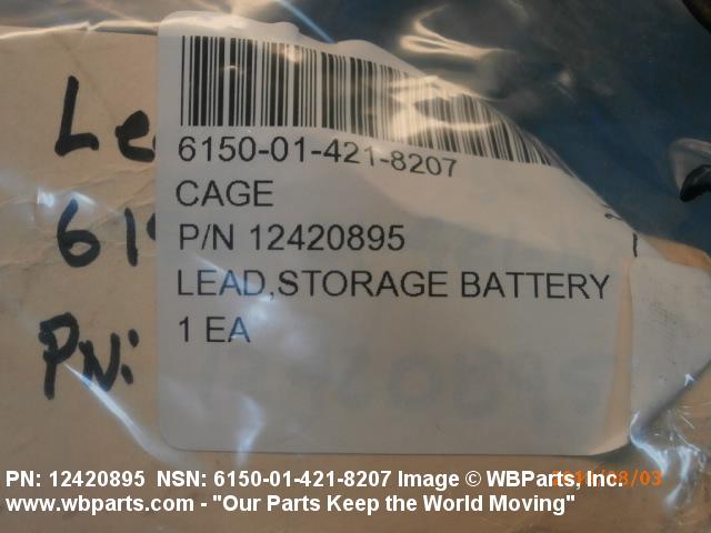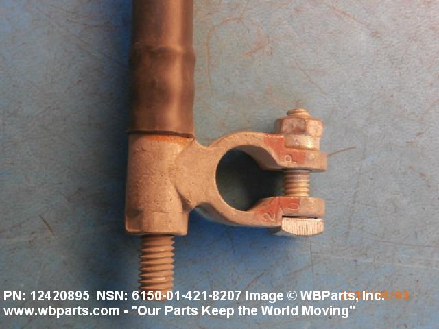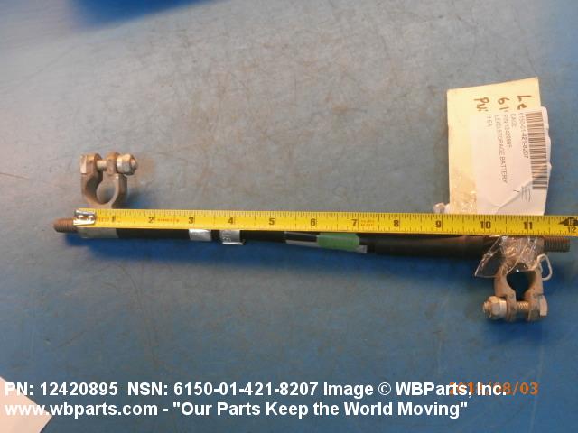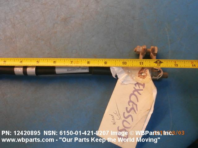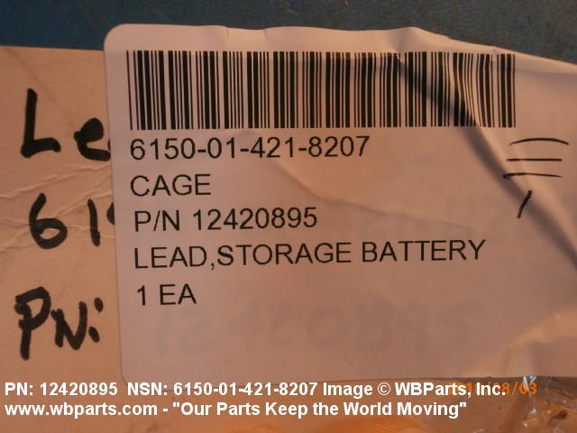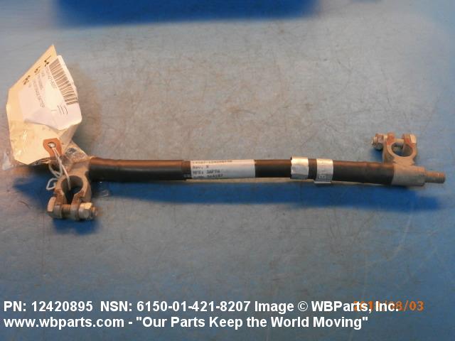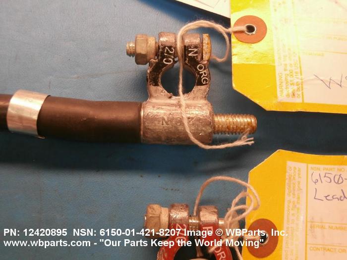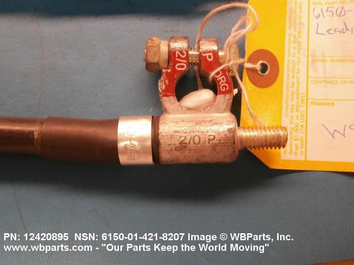 6150-01-421-8207 A definite continuous length of electrical conductor of stranded, braided, or laminated construction. Both ends must be terminated and at least one end must have a lug terminal specifically designed for connection to a storage battery. It may be insulated or uninsulated and may also include an outer protecting sleeve or conduit. For leads of this nature with other types of terminals see LEAD, ELECTRICAL. Excludes LEAD, IGNITION, ENGINE; and LEAD, ENGINE.