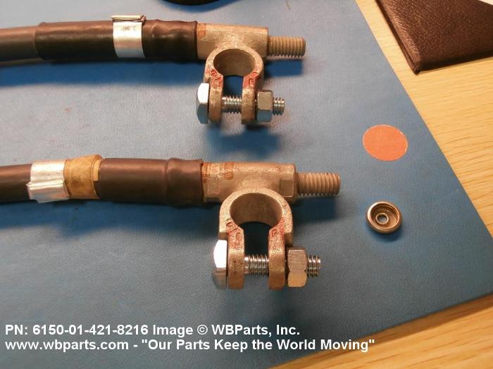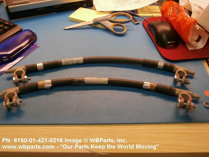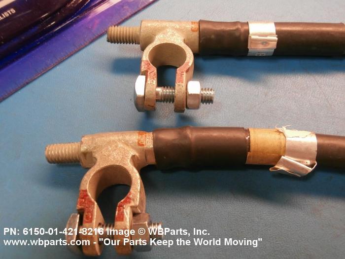 6150-01-421-8216 A definite continuous length of electrical conductor of stranded, braided, or laminated construction. Both ends must be terminated and at least one end must have a lug terminal specifically designed for connection to a storage battery. It may be insulated or uninsulated and may also include an outer protecting sleeve or conduit. For leads of this nature with other types of terminals see LEAD, ELECTRICAL. Excludes LEAD, IGNITION, ENGINE; and LEAD, ENGINE.