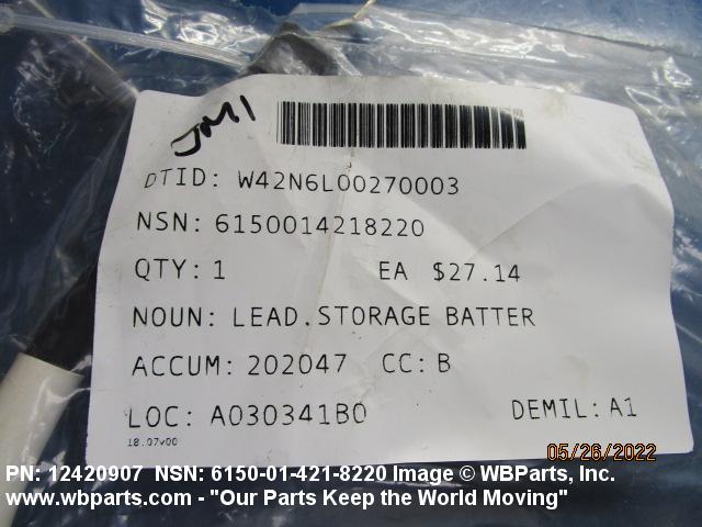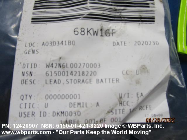 Part Alternates: 12420907, 6150-01-421-8220, 01-421-8220, 6150014218220, 014218220