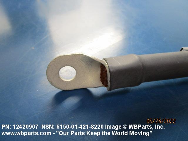 6150-01-421-8220 A definite continuous length of electrical conductor of stranded, braided, or laminated construction. Both ends must be terminated and at least one end must have a lug terminal specifically designed for connection to a storage battery. It may be insulated or uninsulated and may also include an outer protecting sleeve or conduit. For leads of this nature with other types of terminals see LEAD, ELECTRICAL. Excludes LEAD, IGNITION, ENGINE; and LEAD, ENGINE.