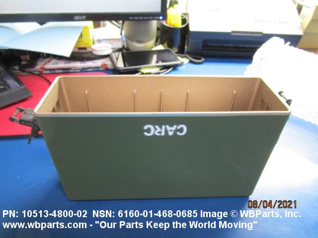 6160-01-468-0685 A closed structure, with or without a cover, designed to contain a specific number of battery jars or batteries. See also TRAY, BATTERY. May include items, such as those that enable charging and/or battery status monitoring.