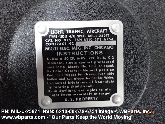 NSN 6210-00-578-6754 SDU4U, MILL25971, MIL-L-25971
