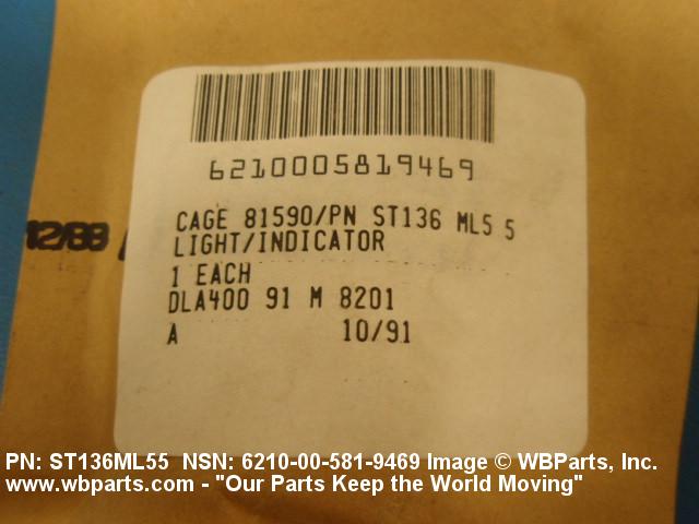 Part Alternates: ST136ML55, ST136-ML5-5, 6957125, 695712-5, 6210-00-581-9469, 00-581-9469, 6210005819469, 005819469